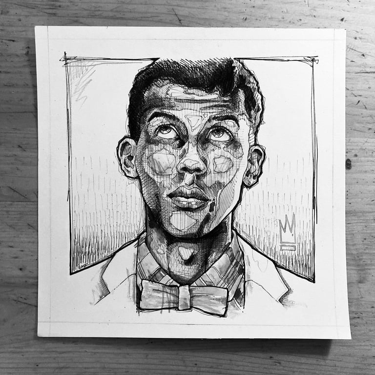 La technique de dessin au stylo BIC repose sur l'utilisation de contrastes pour donner vie et profondeur à une œuvre. En jouant avec les nuances de tonalité, l'artiste peut créer des ombres et des lumières, rendant les formes plus dynamiques. Cet outil permet de travailler les détails en utilisant des hachures croisées ou des pointillés. le nombre de passage permet de varier l'intensité du noir et d’obtenir un contraste saisissant entre les zones claires et sombres. L'ajout de traits plus épais dans les zones d’ombre renforce l’effet de profondeur. Enfin, en superposant les couches d'encre, on obtient une richesse visuelle qui capte l'attention et invite le spectateur à explorer chaque élément du dessin.